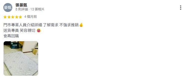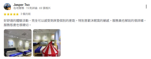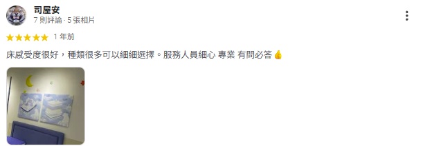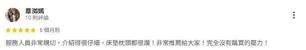 專員貼心又專業 細心還溫柔😂 重點床墊也很舒適,體驗感棒棒👍
