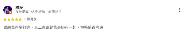 試躺覺得蠻舒適,且工廠跟銷售是綁在一起,價格值得考慮