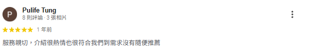 服務親切,介紹很熱情也很符合我們到需求沒有隨便推薦