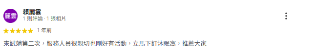 來試躺第二次,服務人員很親切也剛好有活動,立馬下訂沐眠窩,推薦大家
