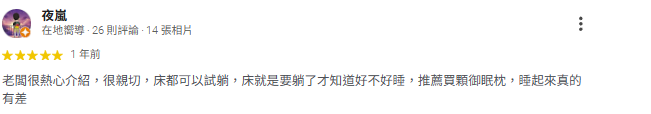 老闆很熱心介紹,很親切,床都可以試躺,床就是要躺了才知道好不好睡,推薦買顆御眠枕,睡起來真的有差