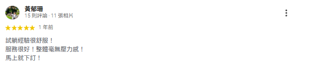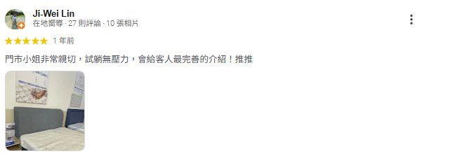 女店員很親切,介紹很詳細,環境好試躺的過程無壓迫感👍