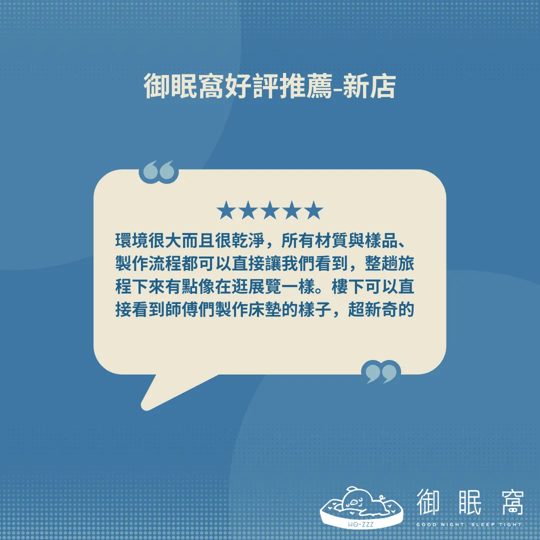 好的床帶你上天堂 不好的床帶你失眠數綿羊 還記得小時候睡在地板通鋪都沒問題 年紀越大身體真的睡不了了 挑床墊一定要去試躺 因為每個人喜歡的軟硬和支撐程度都不一樣 朋友介紹一家在地經營 40 年專業的床墊工廠"御眠窩" 我查了一下台北有店面可以試躺