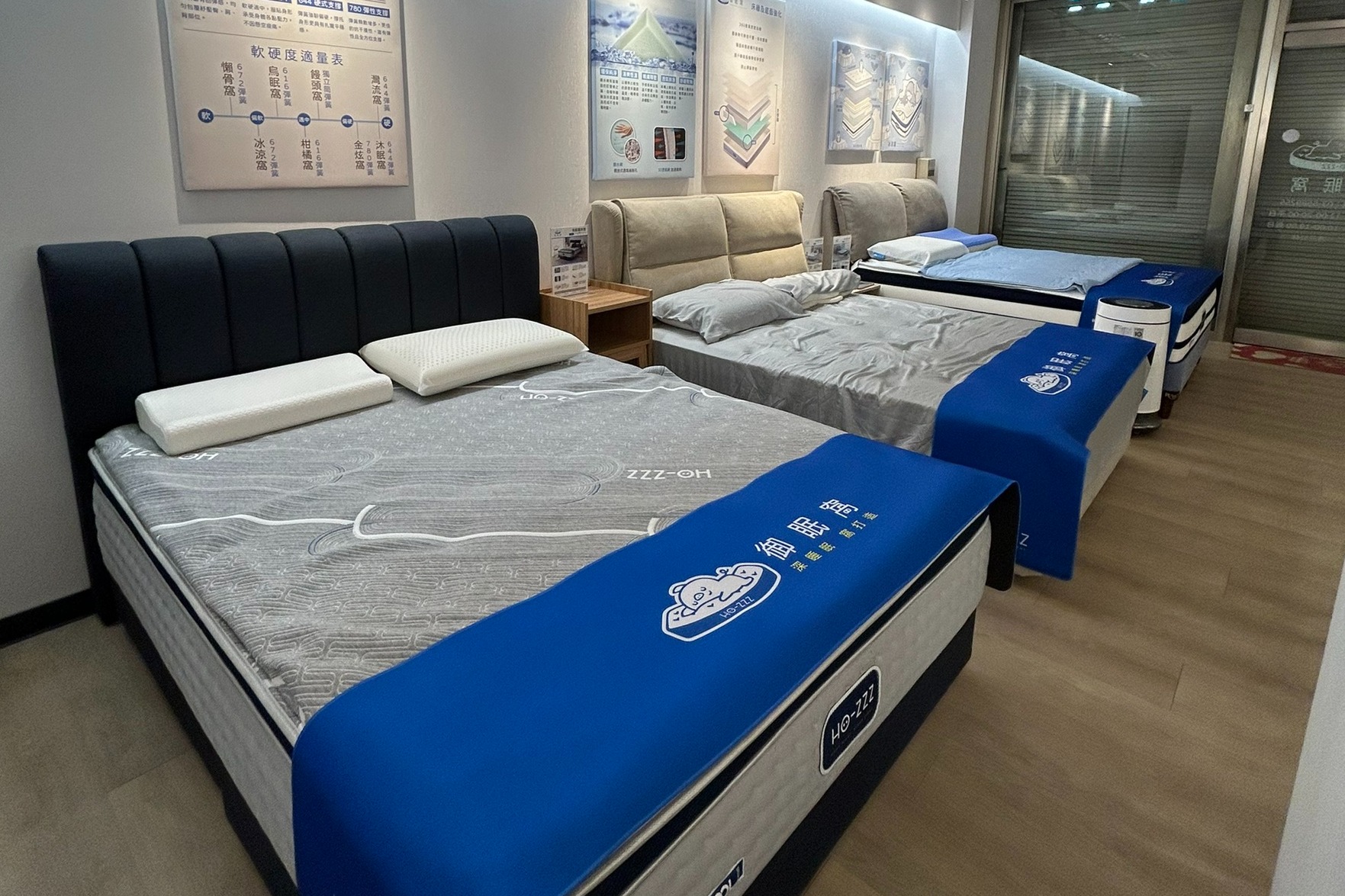 二樓展區也有多款不同躺感的床墊,歡迎上樓體驗
