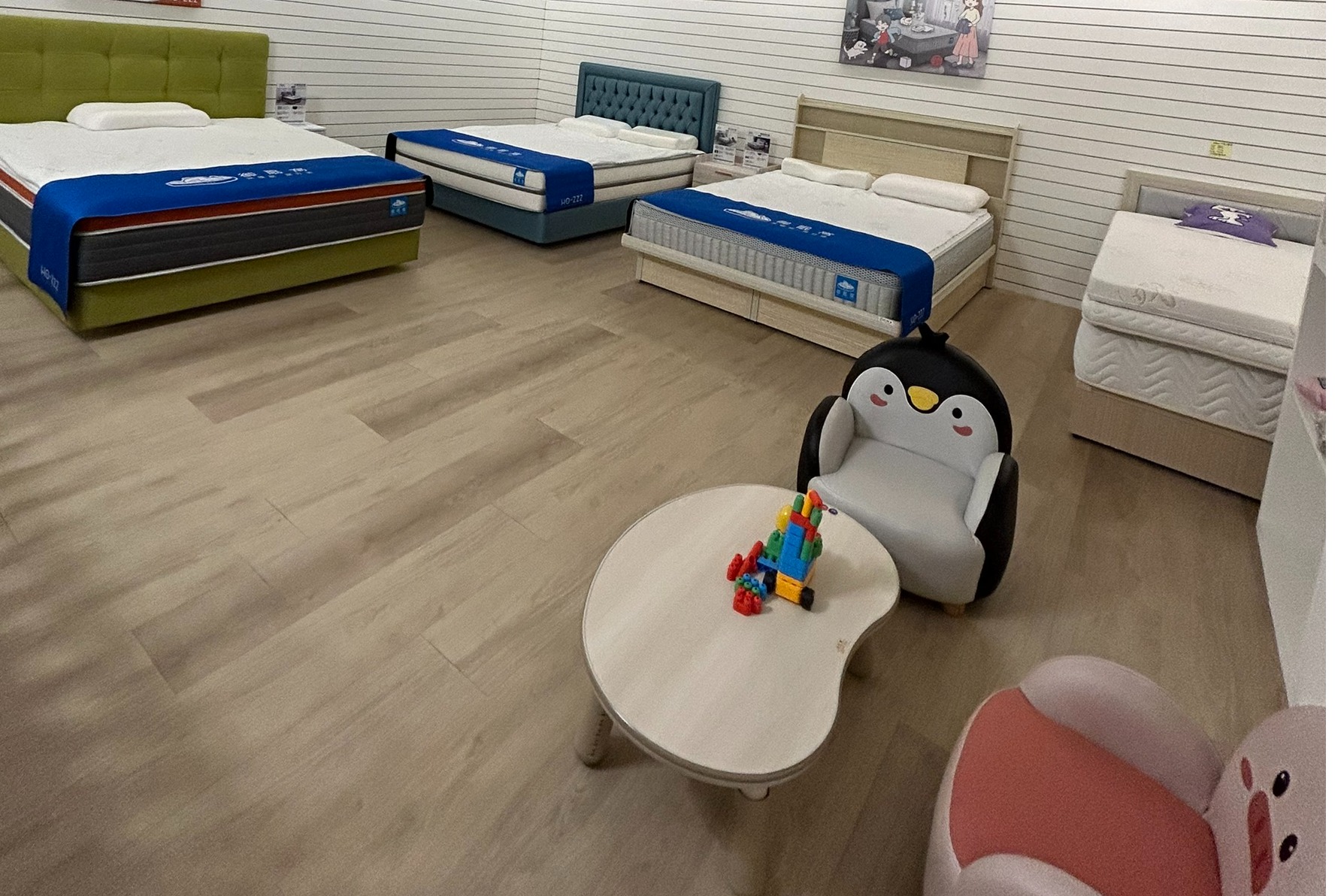 門市設有親子遊戲區,讓爸媽試躺更輕鬆自在