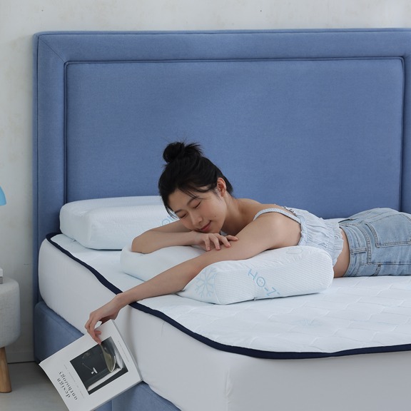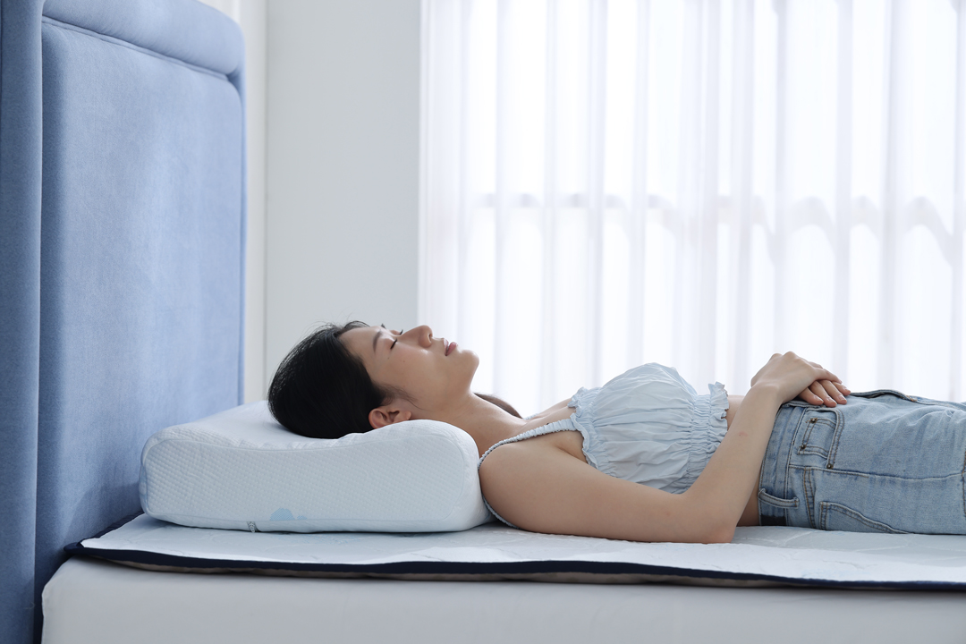 枕頭B形曲線,完美貼合肩頸,兩面皆可睡,也能調整高度。